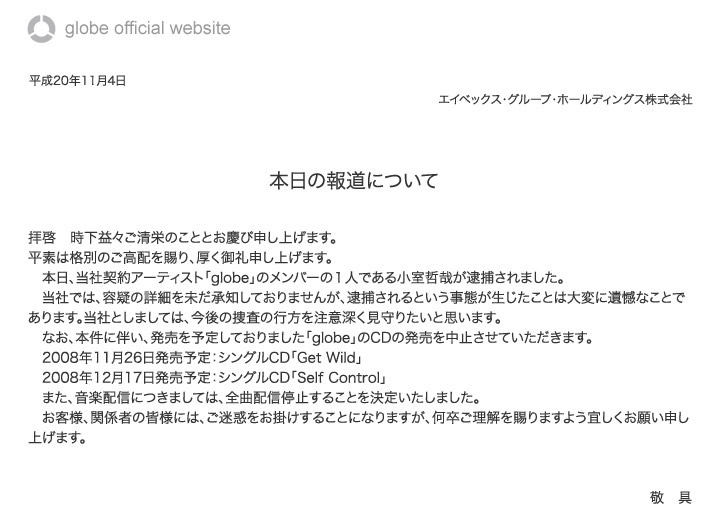 まさか、小室哲哉がお金で困っていたとはねぇ~。 というわけで、近日発売予定だった globe の 『GET WILD』 が幻の作品となっちゃうんだね