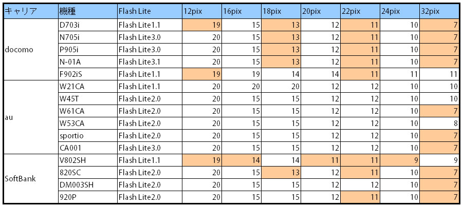 【キャリアごとのフォントサイズと表示数】