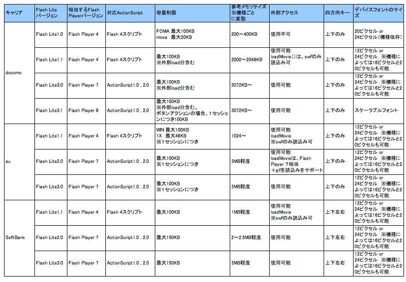 ・Flash Lite 1.x … Flash Player 4